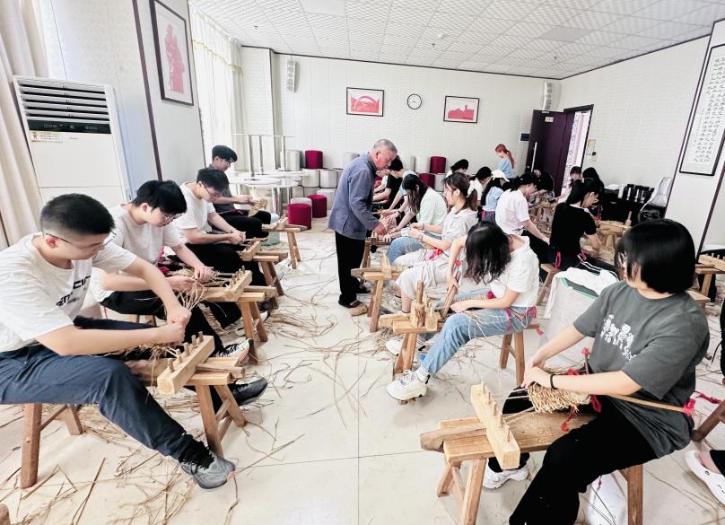 下午,同学们参与了“学编‘红军草鞋’”体验教学。在草鞋师傅的细心指导下,同学们认真学习搓绳、编织、系结等步骤,亲手将粗糙的稻草编织成草鞋的雏形。这不仅是一门传统手工艺的实践,更是一次深刻的革命历史教育。通过亲身体验,同学们真切感受到革命年代军民同心、共克时艰的精神力量,在一编一织中重温了那段艰苦而光辉的岁月。