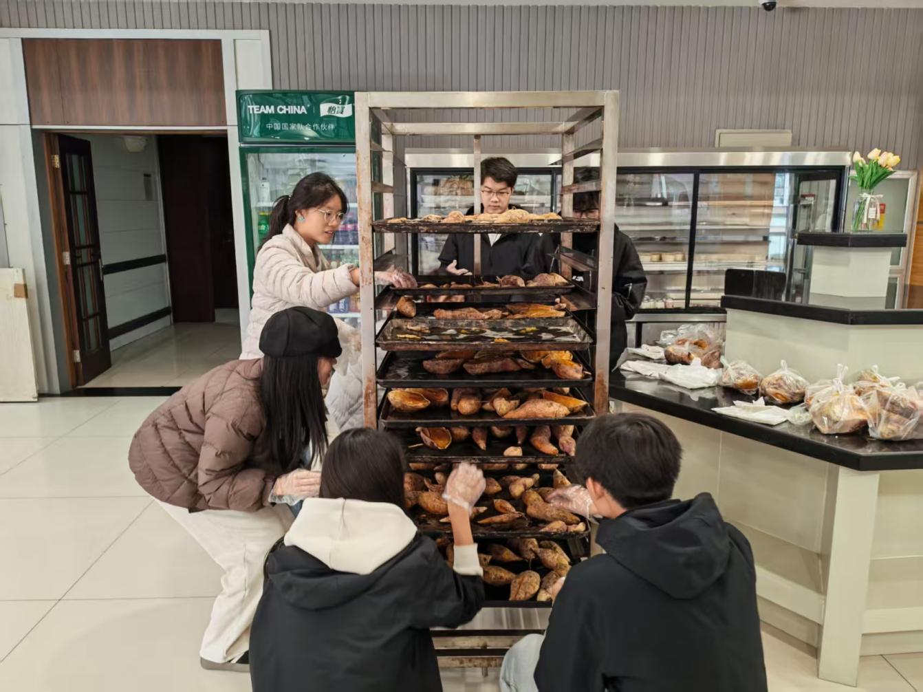 劳动结束后,学院携手齐园餐厅共同完成了这份“土地礼物”的传递。经厨师烤制,同学们亲手挖出的红薯化作金黄软糯的美味,分发到每一位同学手中。品尝着自己劳动的果实,同学们真正理解了劳动的价值。这份甜蜜,既源于同学们的辛勤付出,也离不开学院的组织与后勤人员的支持,共同诠释了“五育并举”中劳动教育的深层内涵。
