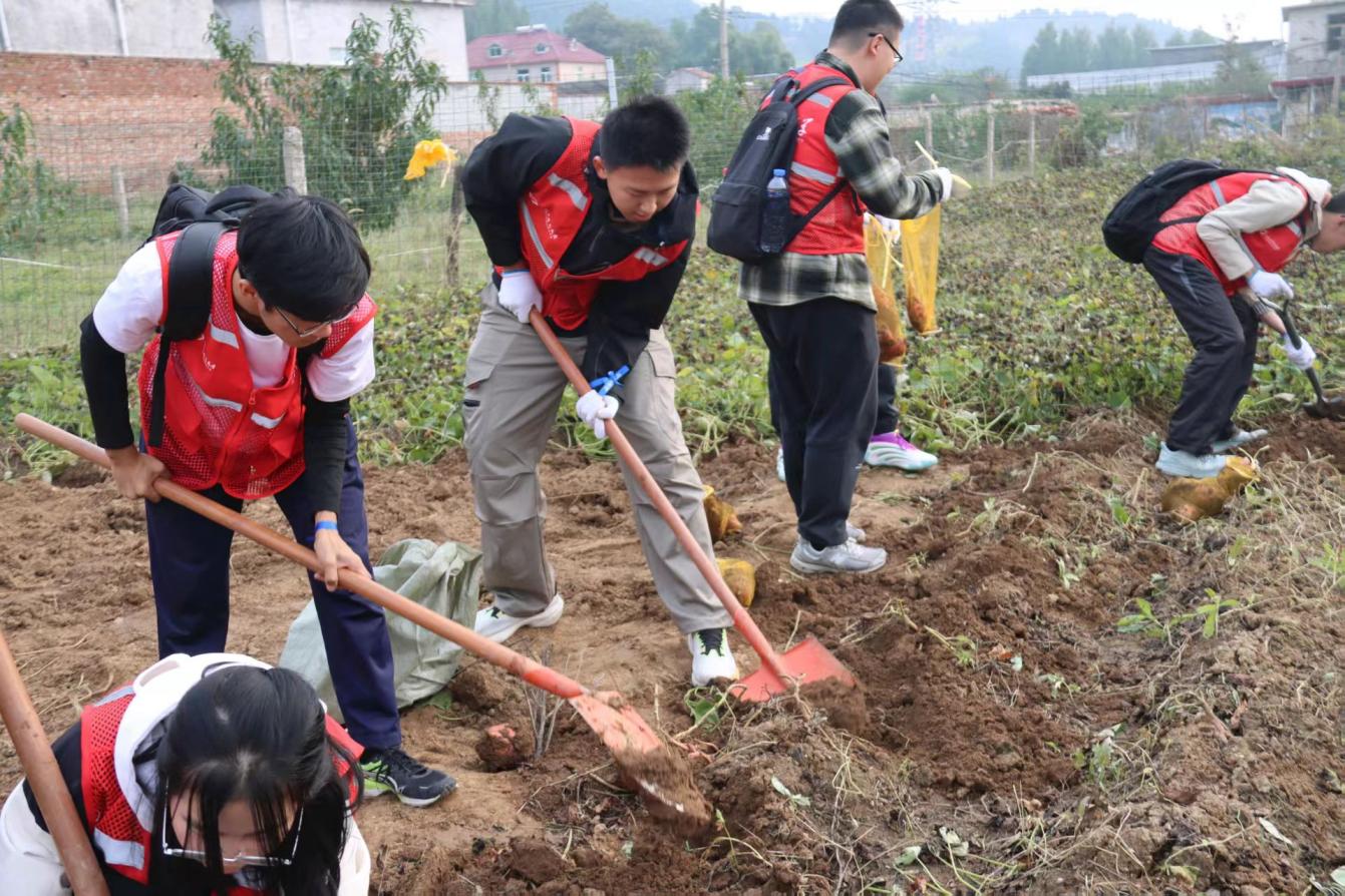 同学们暂别书本课堂,走入自然课堂,手持铁锹、锄头,在田间开展了一场热火朝天的“红薯收获记”。从拨开藤蔓到掘土寻薯,从小心翼翼到熟练操作,大家在协作中掌握了劳动技巧,也在汗水中体会了“一粥一饭,当思来之不易”的深刻含义。一颗颗饱满的红薯破土而出,映衬着同学们沾满泥土的笑脸,劳动的热情与收获的喜悦在田野间交织回荡。
