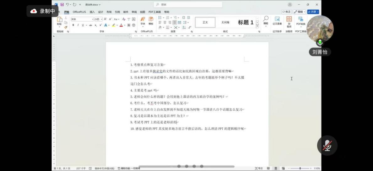 2024级分享会由2022、2023级本科生主讲。许佳宁围绕《中华人民共和国史》,说明考核形式变化,提示复习须完全掌握PPT内容,并区分基础题与开放题的不同应对策略;刘菁怡分享《政治学概论》备考方法,建议先完成学术论文,复习时整合PPT与教材内容,重点关注西方思想家观点与中国共产党相关理论;李昭烨通过录制视频讲解了《马克思主义政治经济学》学习要点,强调理解重于背诵,并详细分享了复习心得与答题逻辑训练方法。
