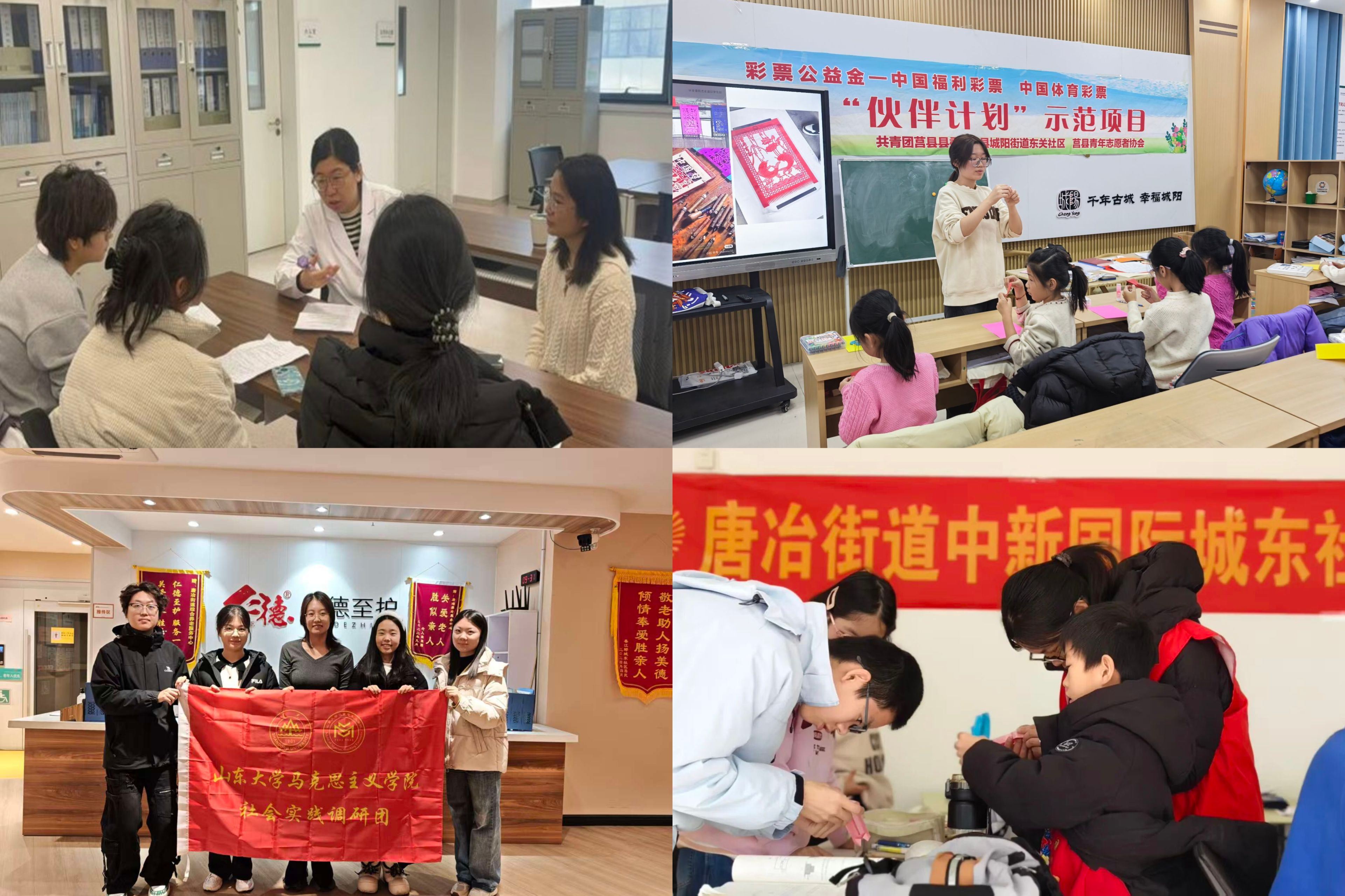 到支教课堂去!马院青年走进支教课堂,化身暖心老师为孩子们打造多彩趣味课程,用知识赋能成长,用陪伴守护童心。小树林历下登麓队、小树林星火燃梦支教队、东曦伴读行支教队三支支教队为社区孩子开设多元课程,开展文化、科普、心理教育;初心践行·沉浸式学党史队创新“党史宣讲+剧本演绎”形式,带领孩子们沉浸式体验红色历史,让红色基因在童心间代代相传。